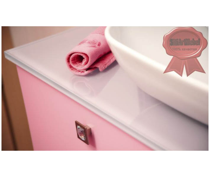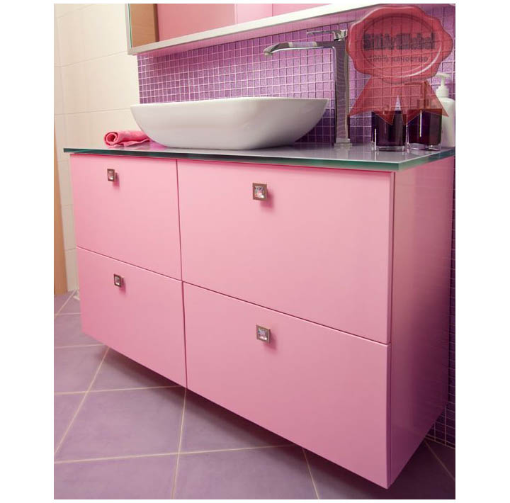 Данная модель станет приятным сюрпризом для прекрасной половины человечества. Яркий розовый фасад привлекает внимание, тем самым делая тумбу центральным элементом любой ванной комнаты. На столешницу может быть установлен умывальник различной формы и размера. Имеется несколько выдвижных ящиков для хранения различных принадлежностей.