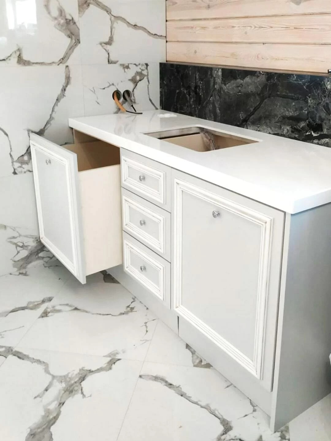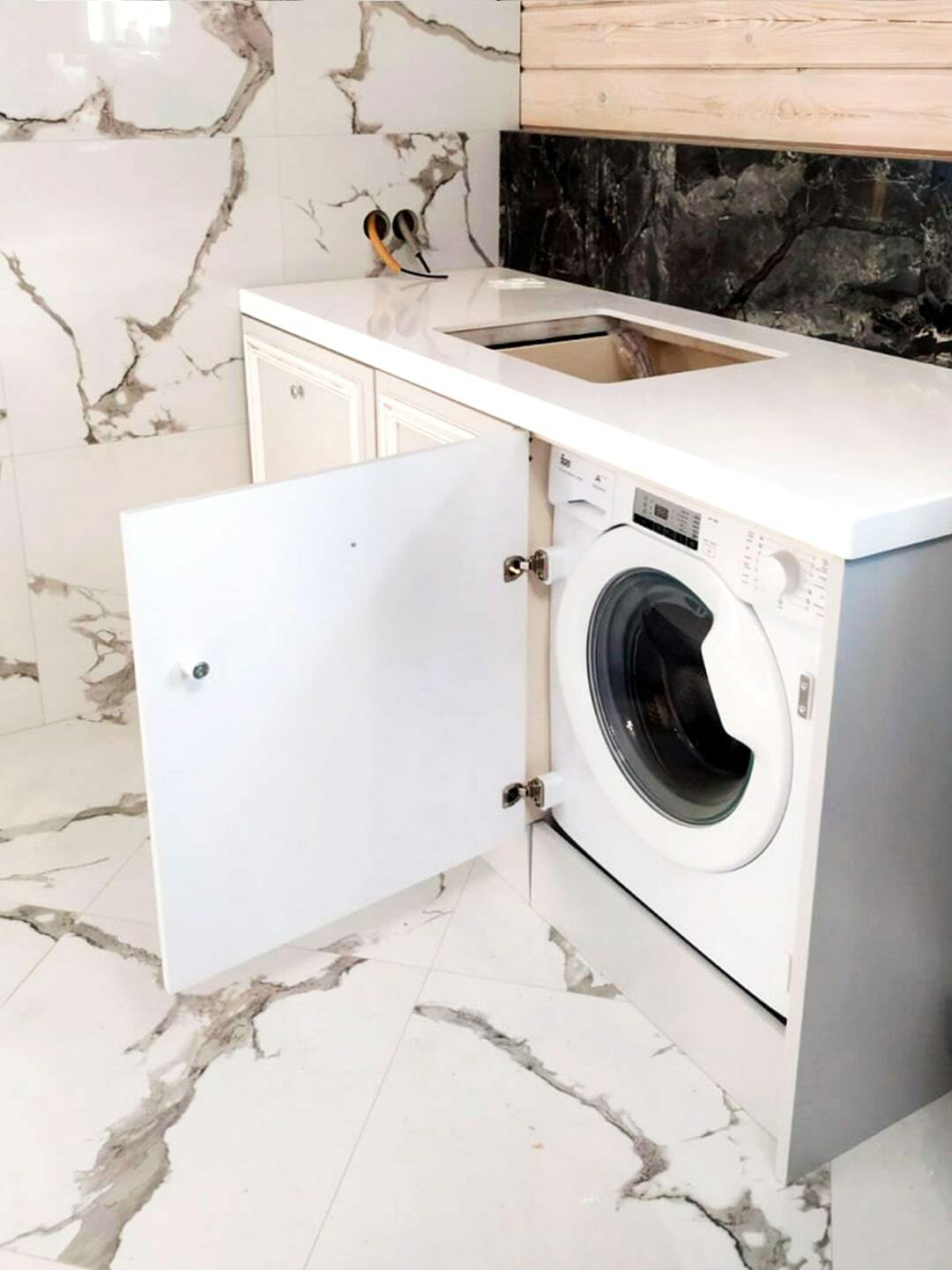 Стильный и современный дизайн. Три выдвижных ящика, ниша для стиральной машины.