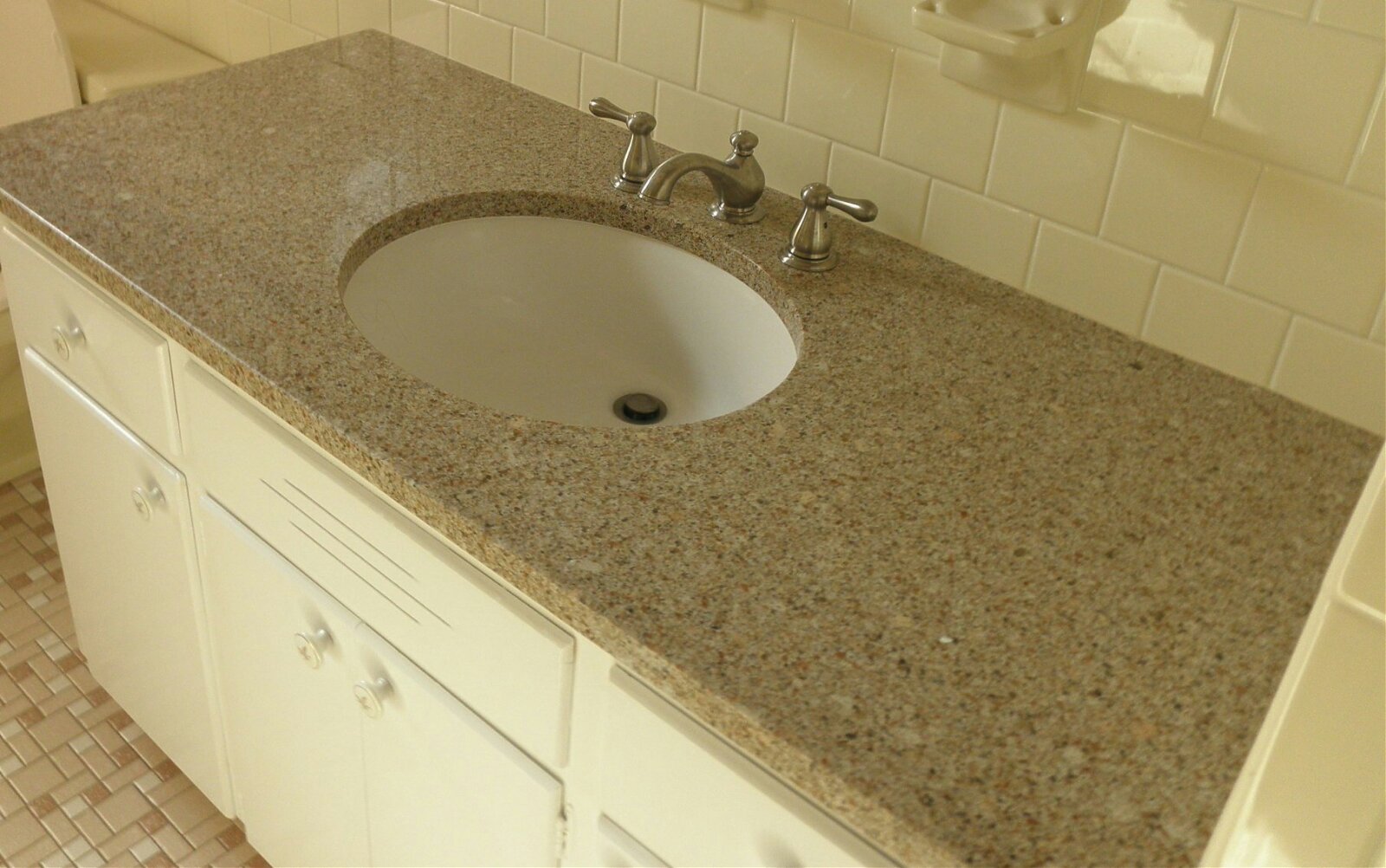Тумба в ванную с столешницей из жидкого гранита