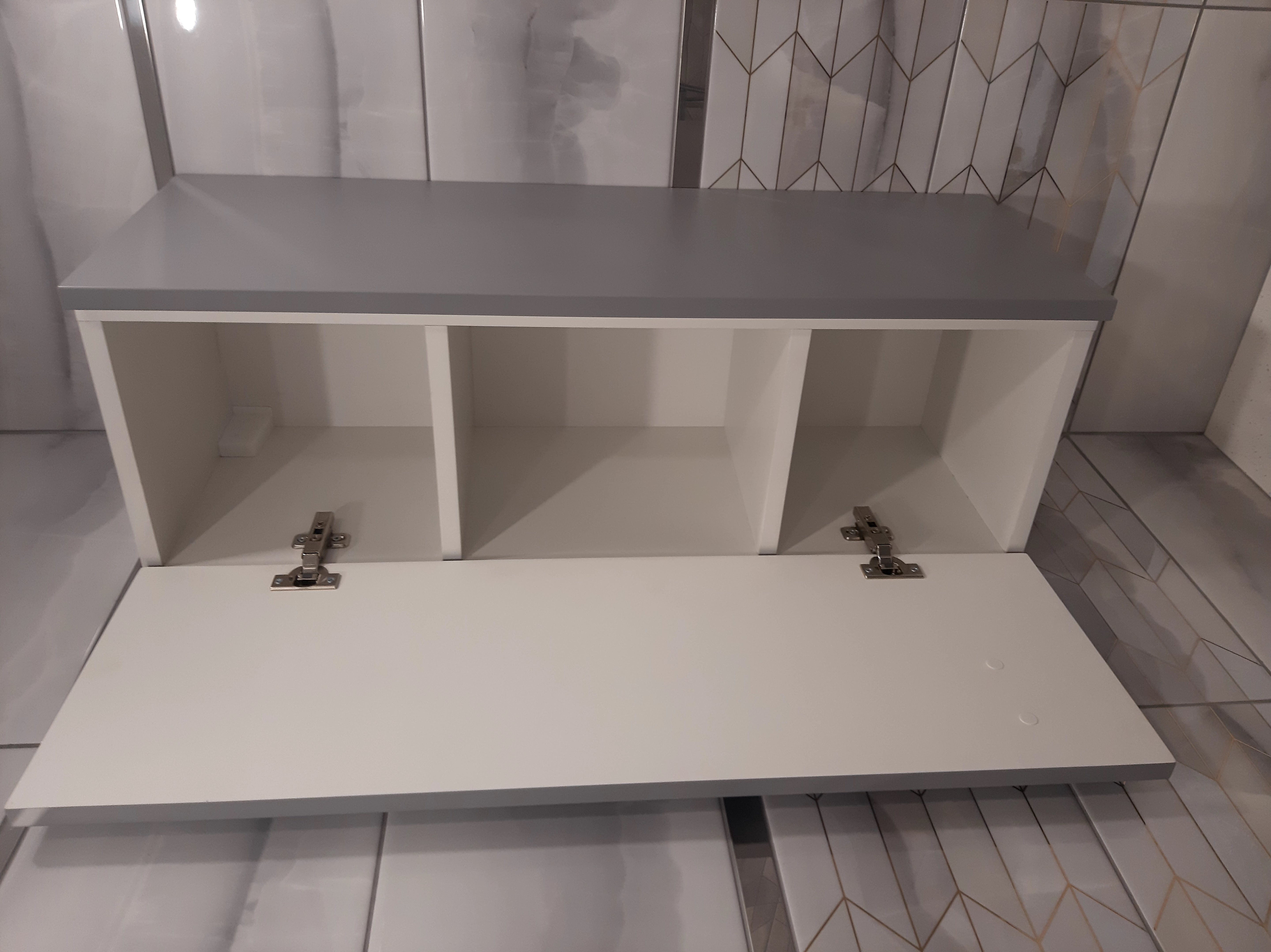 Оснащена шкафчиками для хранения и выдвижными ящиками.