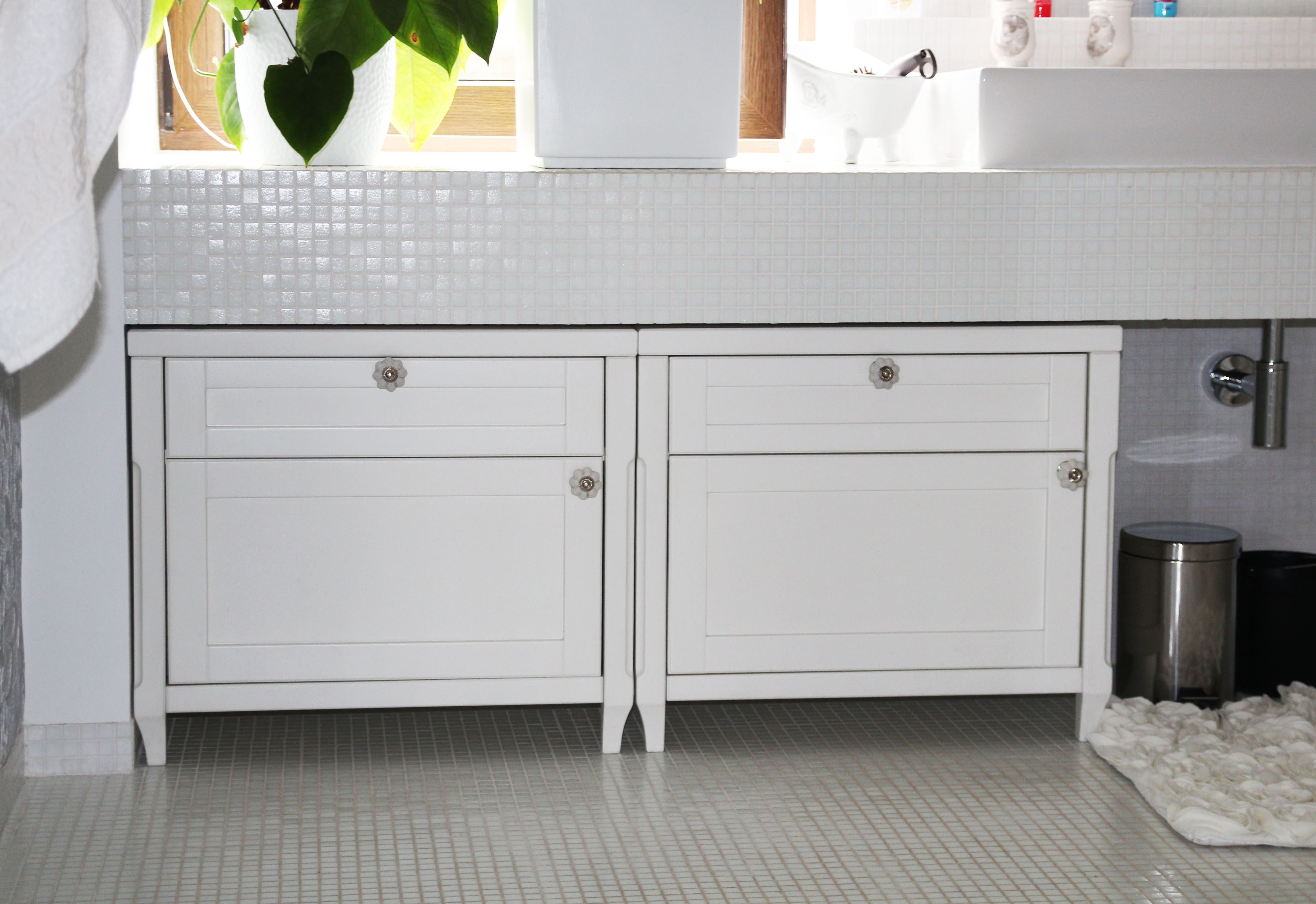 Выполнена в белом цвете. 2 выдвижных ящика, ниша под стиральную машину.