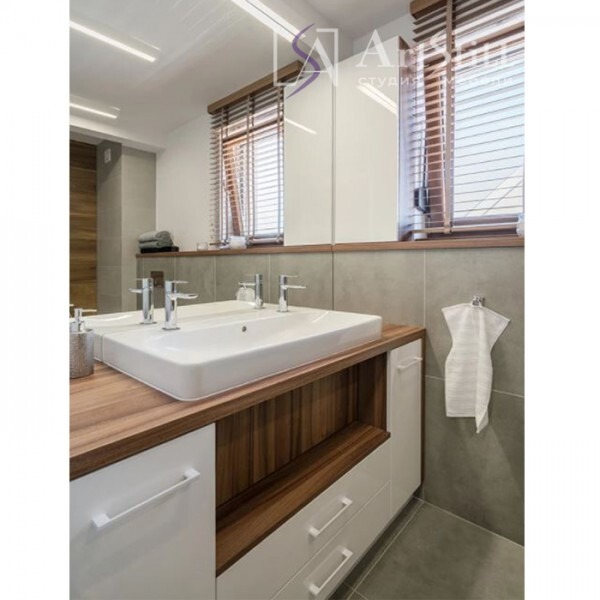 Ванна выполнен в «Скандинавском стиле». Тумба на заказ в ванную установлена на пол.