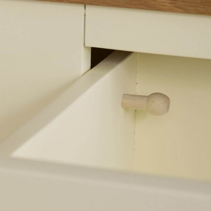 Тумба имеет два выдвижных ящика на роликовых направляющих.