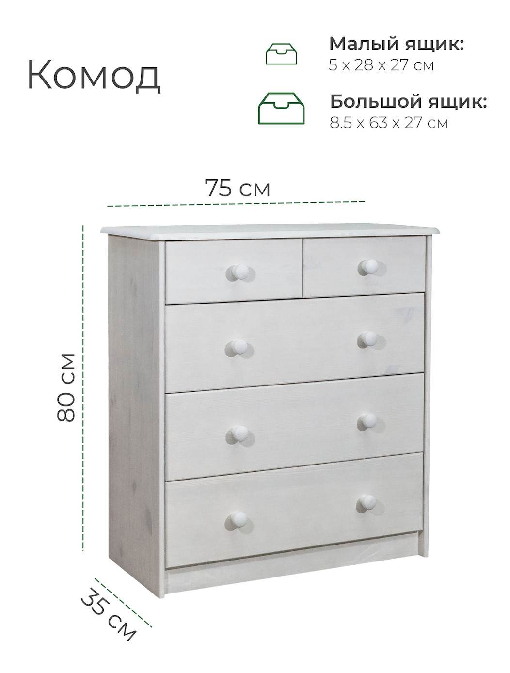 Комод из массива сосны «Фьорд 24» (Белый воск)