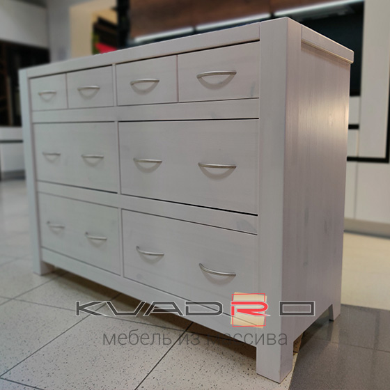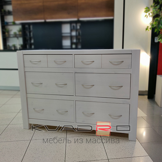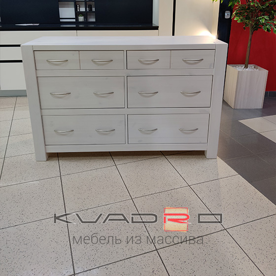 Данная модель выполнена из натурального массива, за счет которого сохранит свою функциональность и превосходный внешний вид на весь срок эксплуатации. Благодаря множеству выдвижных ящиков разных размеров можно в комфорте хранить необходимые вещи. Дизайн комода позволяет использовать его в различных стилях интерьера без каких-либо трудностей.