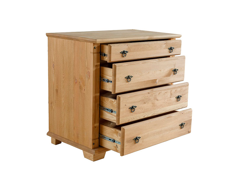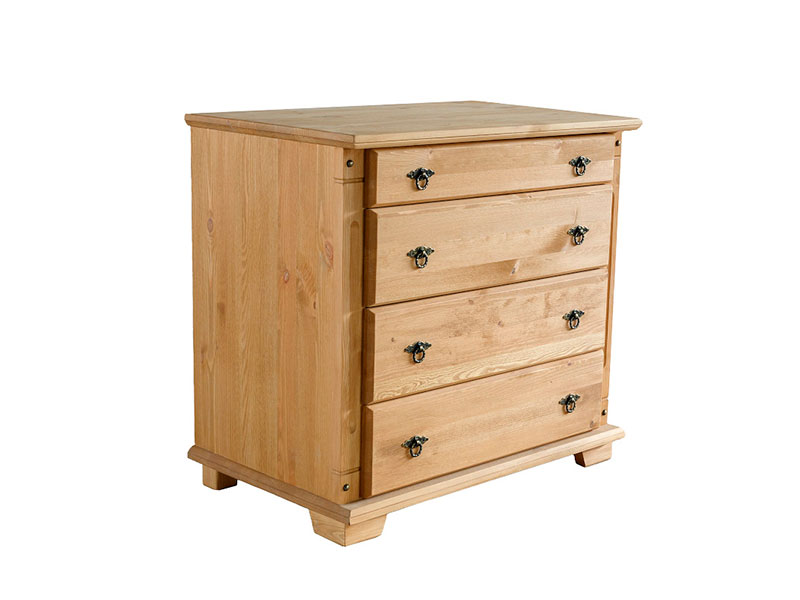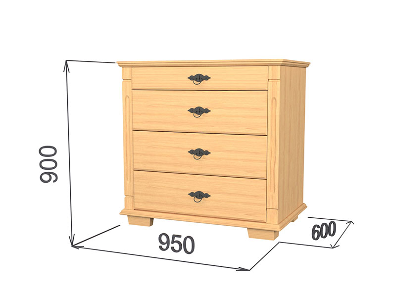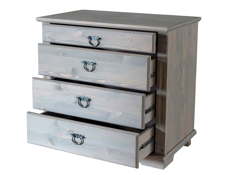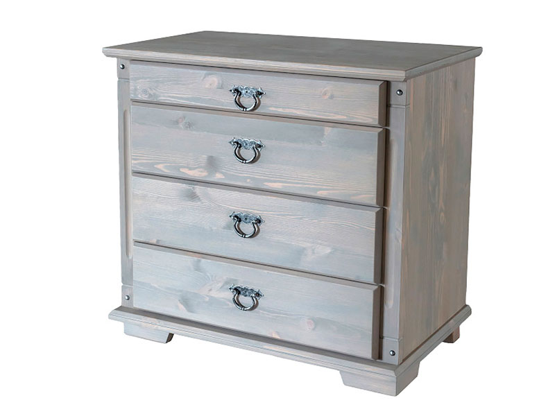Современный комод изготовлен из качественного и надежного массива, с использованием фурнитуры с ручками кольцами.