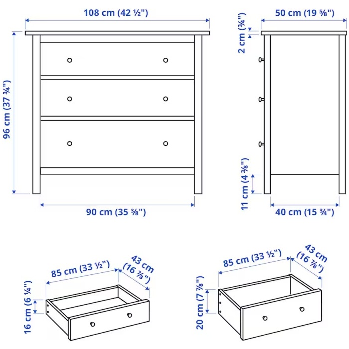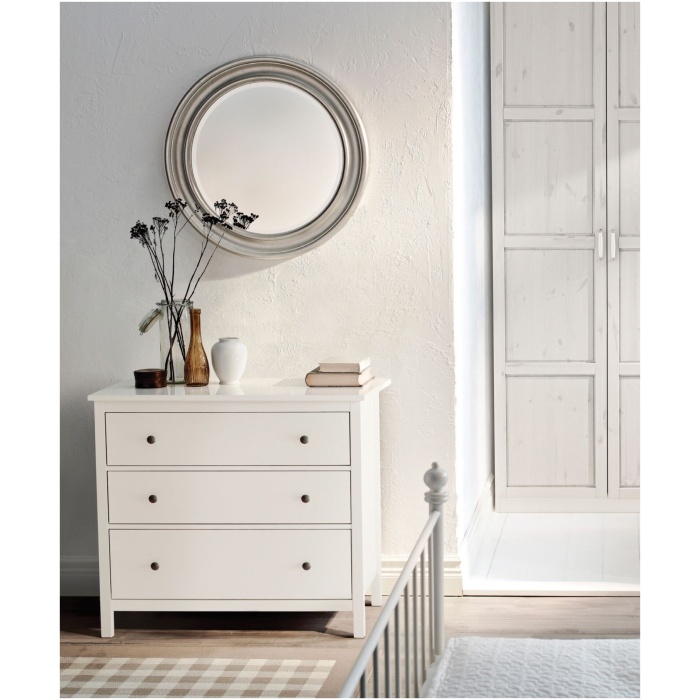 Комод Кантри (Hemnes), выполненный из массива сосны, идеально впишется в существующий интерьер. Он весьма минималистичен в своем дизайне, поэтому его просто интегрировать в существующий дизайн. Белый цвет – нейтральная база, которую легко обыграть с помощью акцентного декоративного элемента на поверхности комода. Черные ручки вносят особый шарм, дополняя белое полотно небольшой изюминкой.