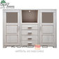Тумба имеет нишу с полками, стеклянную дверь и откидную дверь.