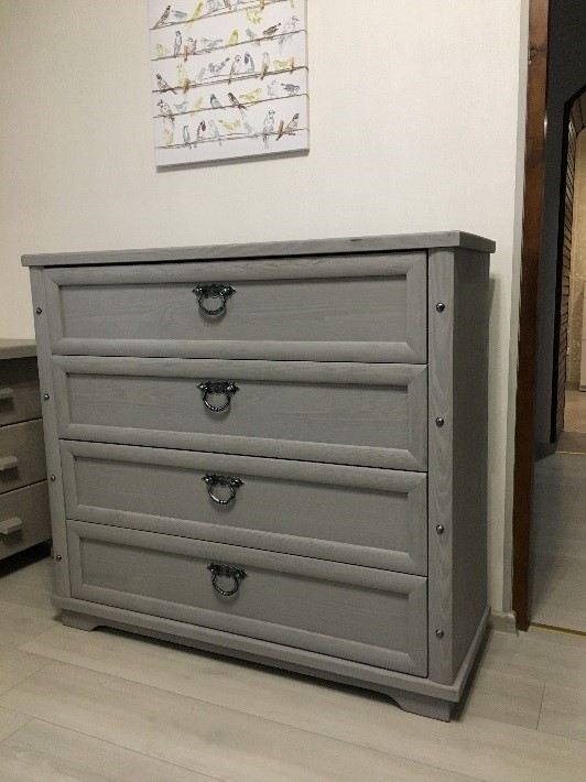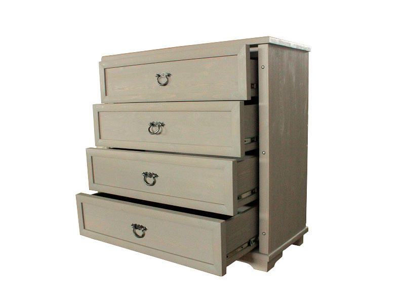 Комод «Прованс» исполнен в красивом светлом цвете. Такой комод станет отличным решением для создания в спальне роскошного интерьера в классическом стиле. Конструкция обладает четырьмя вместительными выдвижными ящиками на бесшумных направляющих и двигаются плавно и легко.