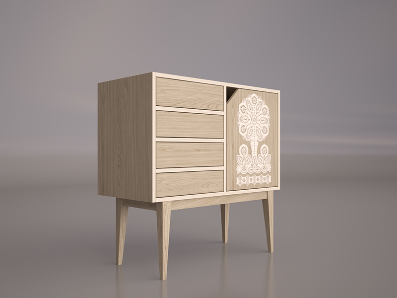Современный комод из массива станет настоящим украшением любой из комнат в вашем доме. Модель состоит из нескольких выдвижных ящиков и тумбочки с распашной створкой с оригинальным узором. Высокие ножки делают изделие еще более интересным и изящным. Натуральное дерево обеспечивает высокую прочность и долговечность данной модели.