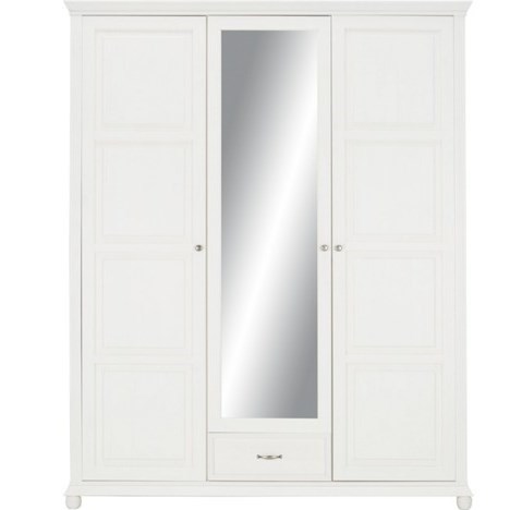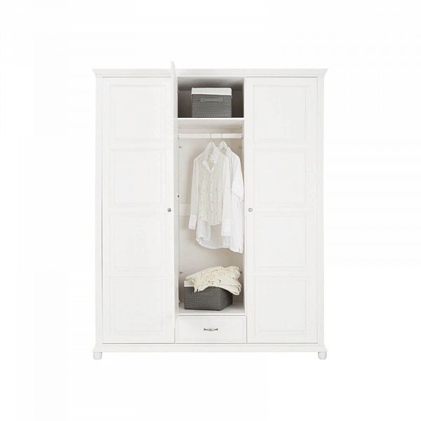 Шкаф предлагает достаточно места для ваших вещей. За тремя дверями вы можете прекрасно хранить футболки, свитера или брюки на семи регулируемых полках. Блузки, рубашки и платья находят свое место на штанге для одежды. В ящике вы можете хранить предметы одежды или аксессуары, которые будут всегда под рукой.