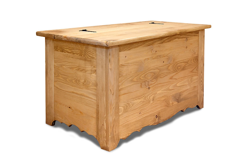 Деревянный вместительный сундук с плоской крышкой может использоваться не только для хранения вещей, но и в качестве банкетки-лавки для прихожей, кухни или детской.