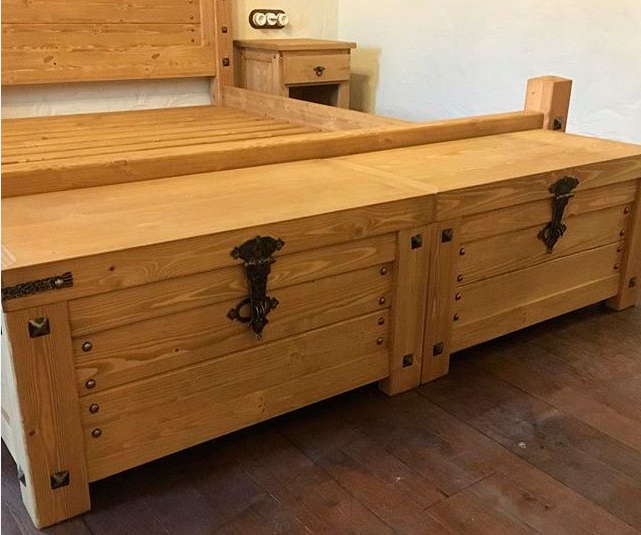 Вместительный широкий комод для спальни с откидной крышкой. Кованые вставки.