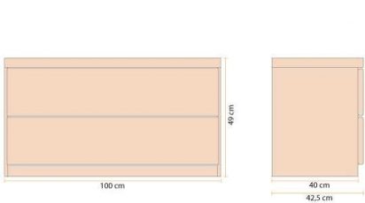 Тумба имеет два выдвижных ящика на роликовых направляющих.