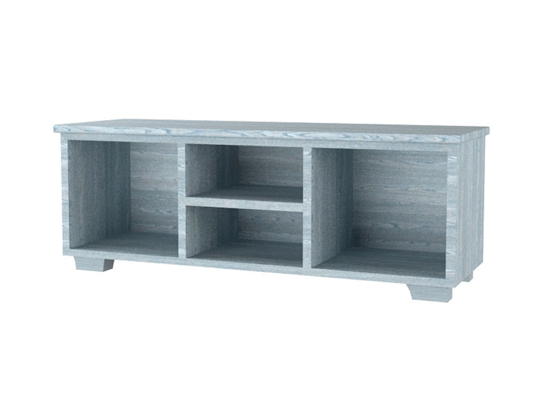 Тумба из натурального массива представляет собой невысокий добротный стеллаж на прочном и основании. Сама же открытая секция выполнена в виде четырех полок с легким закруглением.