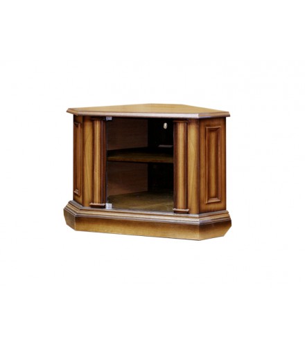 код 85560Элегантная угловая тумба с классической резьбой и с тонированной стеклянной дверцей.