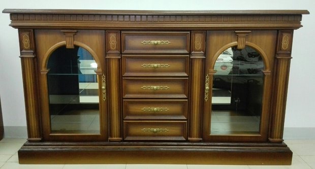 Материал изготовления: массив древесины, клееный массив древесины, шпон древесины (дуб, береза), ДСП, МДФ, стекло, зеркало.