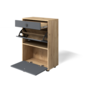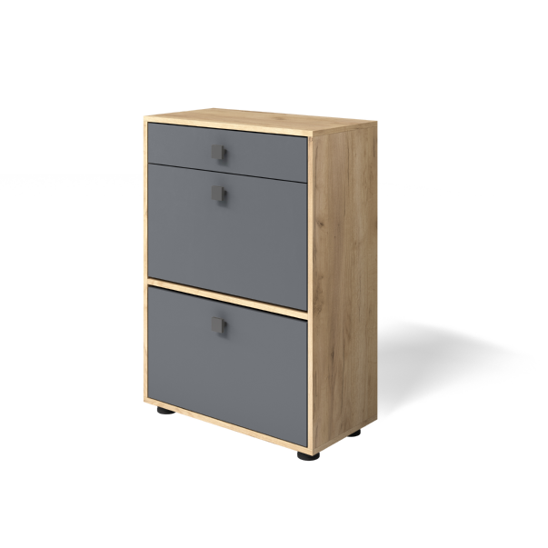 Широкая тумба с двумя распашными отделениями и выдвижными ящиками.
