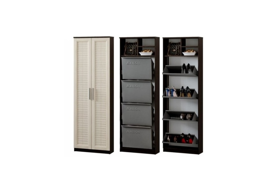 код 122640Узкий высокий обувной шкаф с 4-мя откидными отделениями.