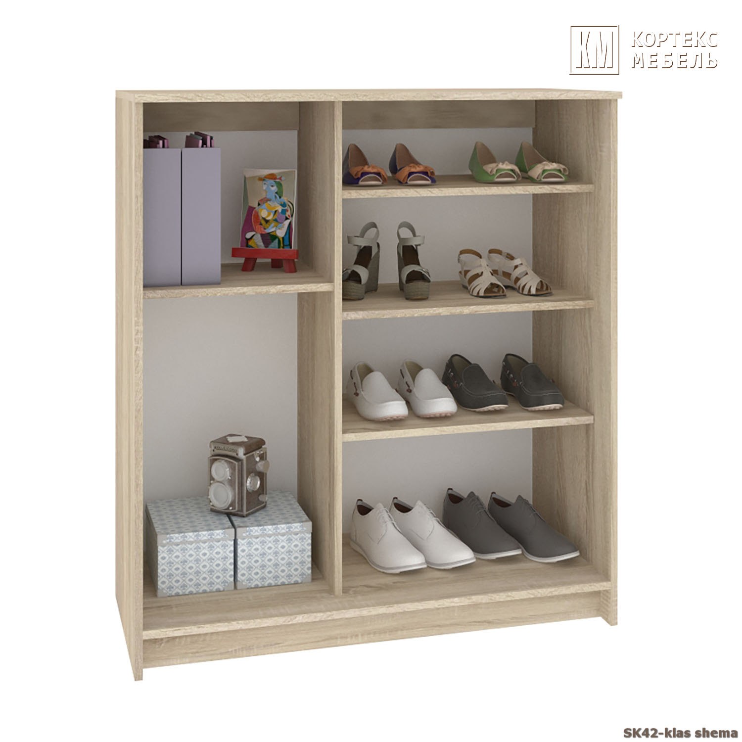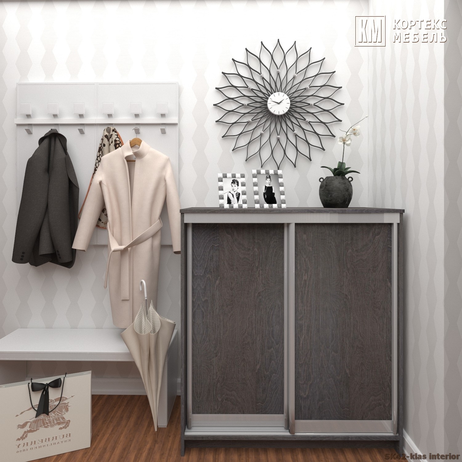 Современное и практичное решение для хранения обуви - 2-дверный шкаф-купе высотой 115,5 см. и шириной 104 см. производства ЧПУП «Кортекс-мебель». Глубина шкафа в 46 см. позволяет разместить даже объёмную обувь или обувь большого размера.