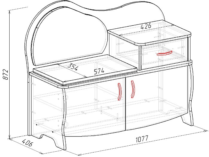 Размер (Ш x Г x В): 1077 x 406 х 872 мм