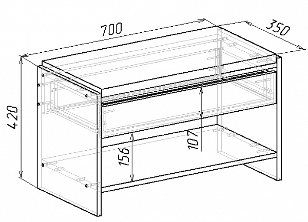 Размер (ШхВхГ): 138х46х42 см. Материал: МДФ покрытый плёнкой, ЛДСП.