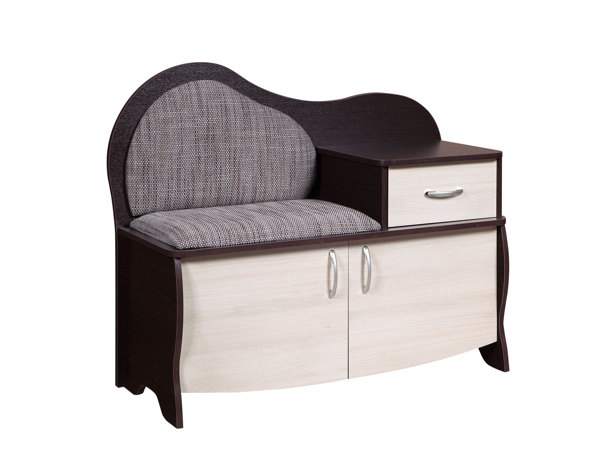 Скамья ВА 012.6 - функциональный комфорт Вашей прихожей! Скамья оборудована выдвижным ящиком и большой нишей для обуви закрытой двумя распашными дверцами.