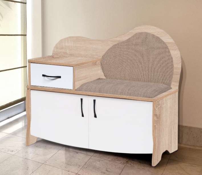 Скамья ВА 012.6 - функциональный комфорт Вашей прихожей! Скамья оборудована выдвижным ящиком и большой нишей для обуви закрытой двумя распашными дверцами.