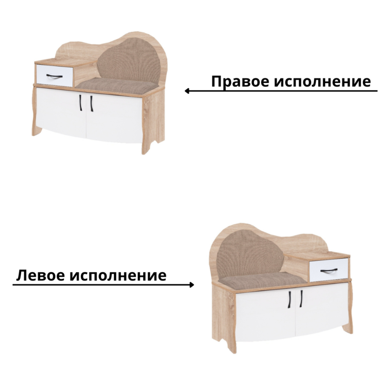 Скамья выпускается в левом или правом исполнении.