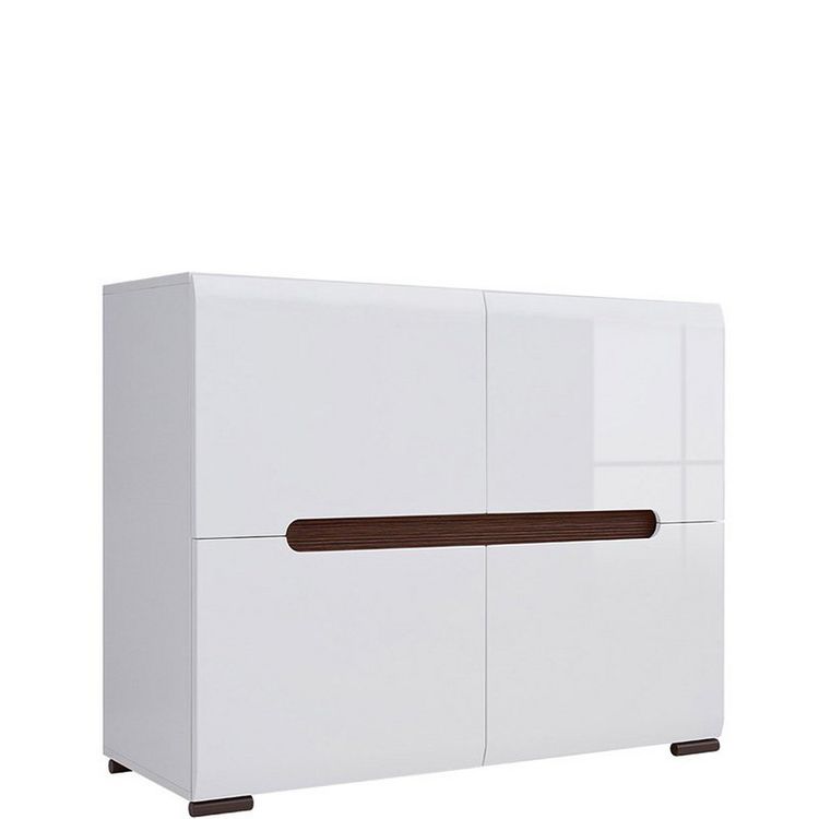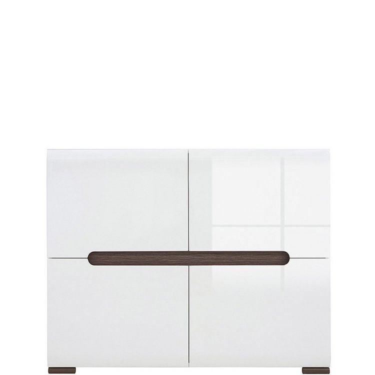Тумба для хранения обуви с двумя закрытыми и тремя открытыми отделениями.