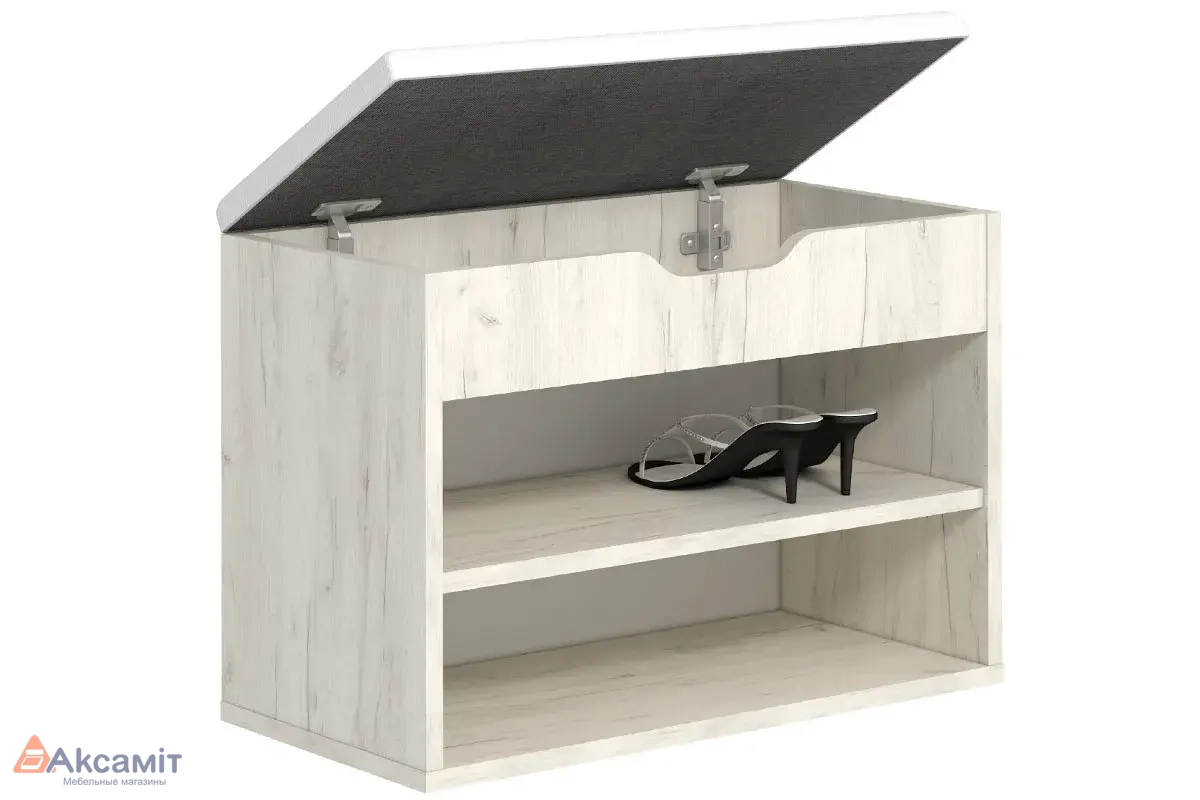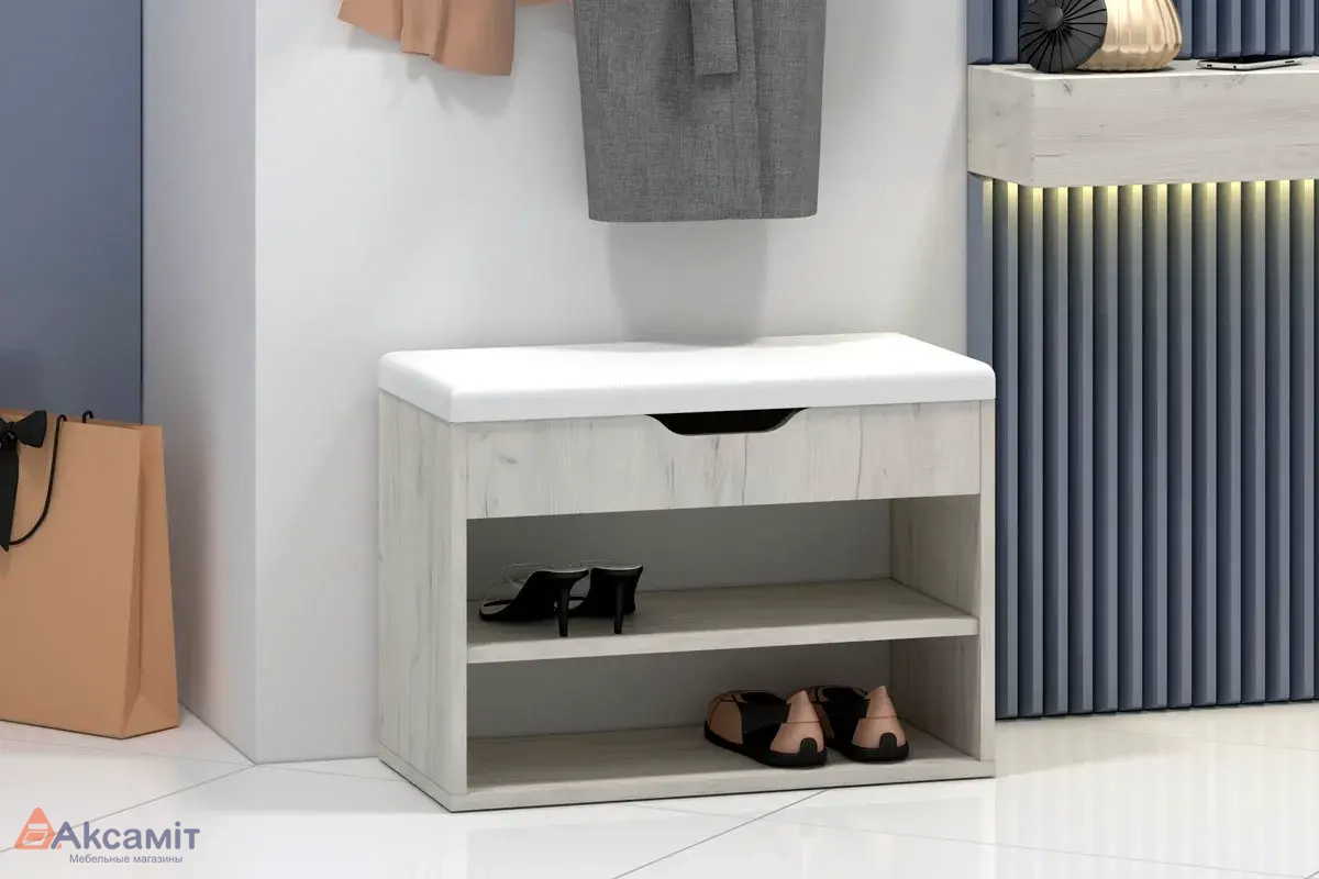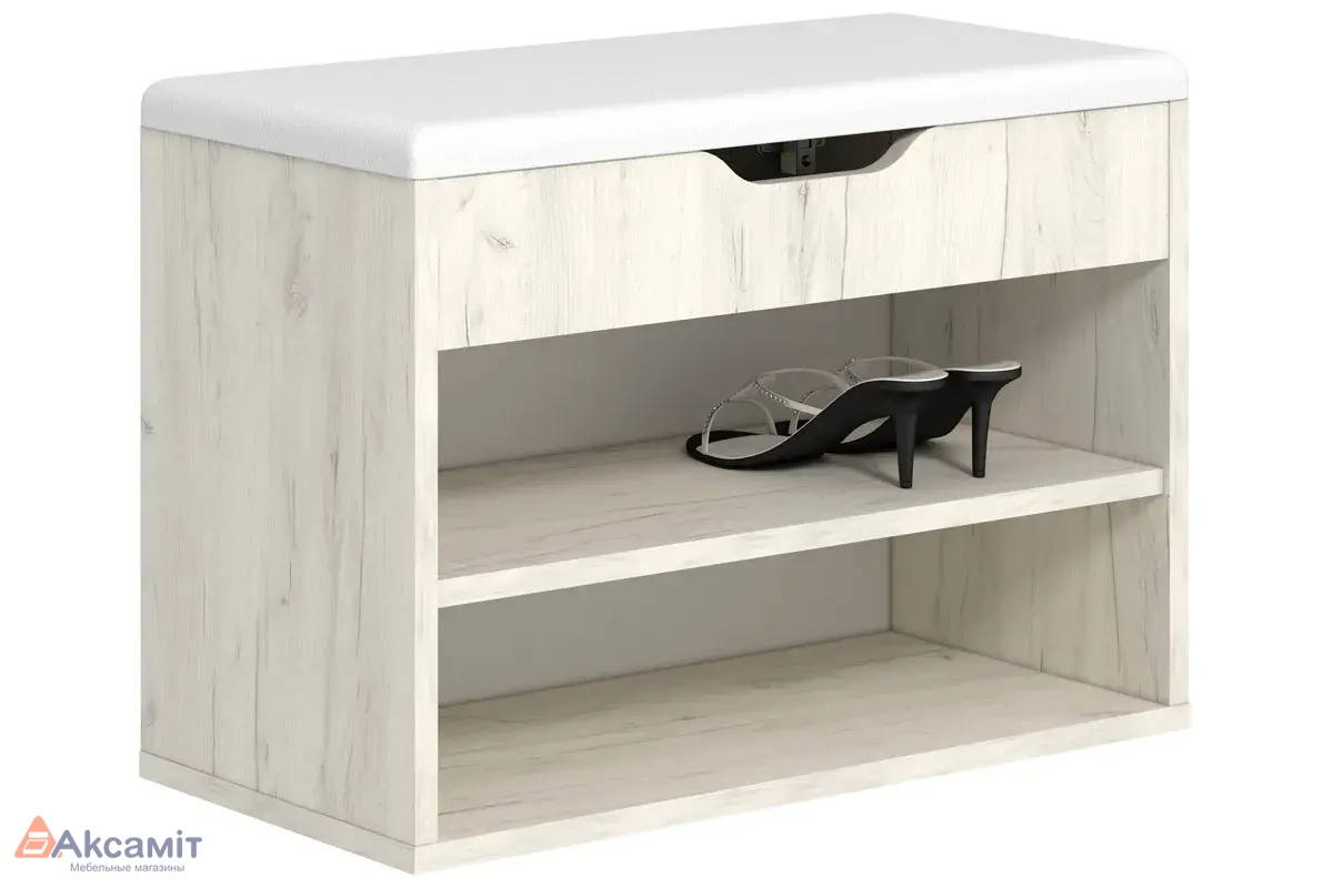 Тумба для обуви «Лаки Тип 1» (Дуб Крафт Белый/Экокожа Белая)