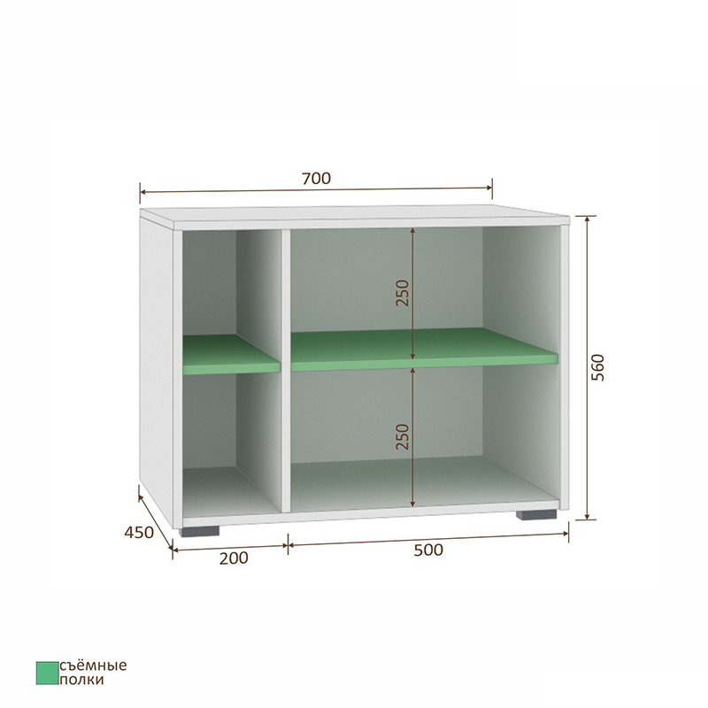 Тумба для хранения обуви с двумя закрытыми и тремя открытыми отделениями.