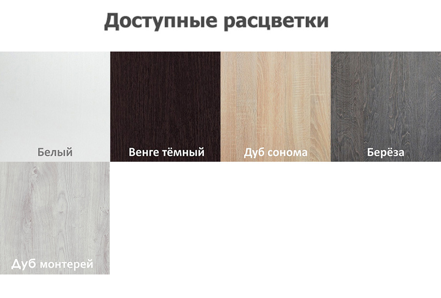 Иные доступные расцветки: венге темный, белый, дуб сонома, дуб монтерей (см. фото 4).
