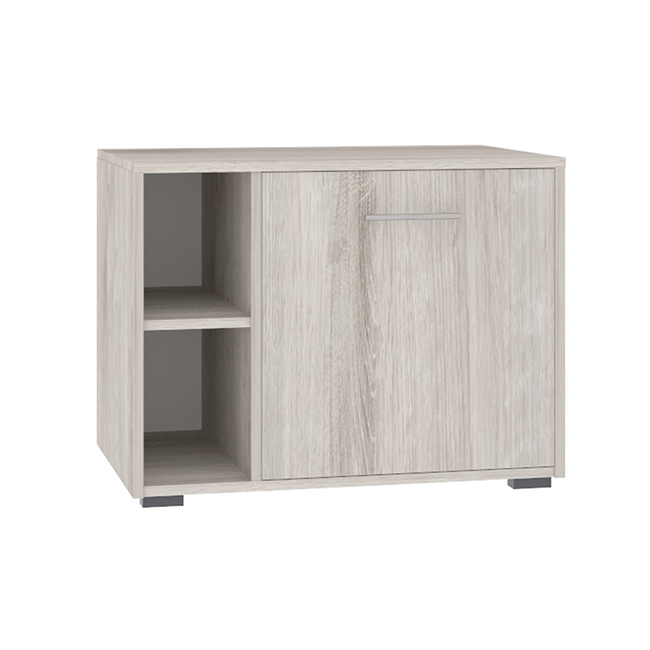 Тумба для обуви из ЛДСП в декоре березы. Два отрытых и два закрытых отделения с полкой.
