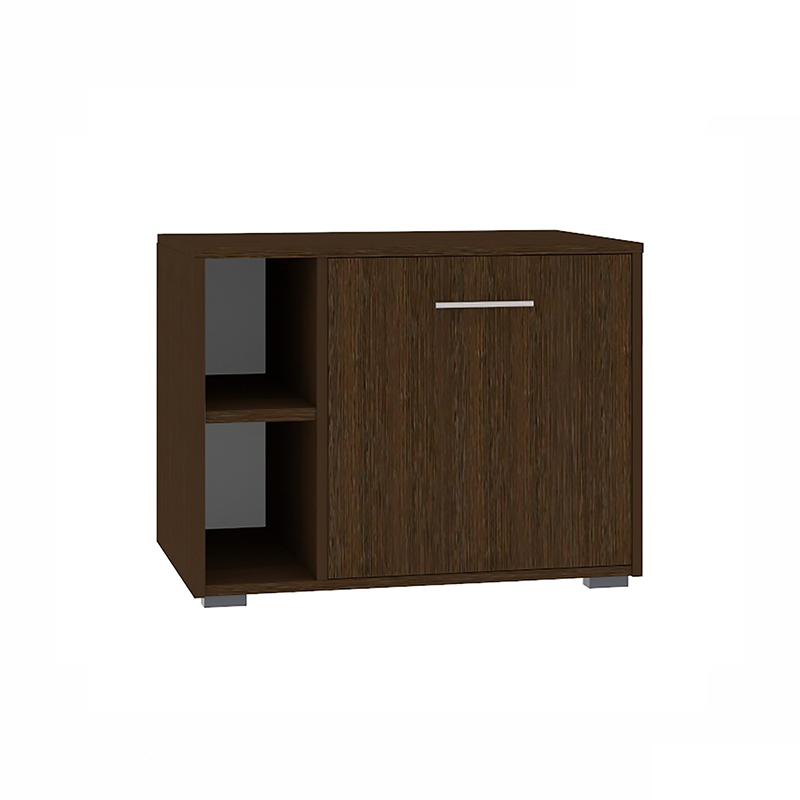 Тумба для обуви с полками и ящиком выполнена из ЛДСП в цвете темного венге.