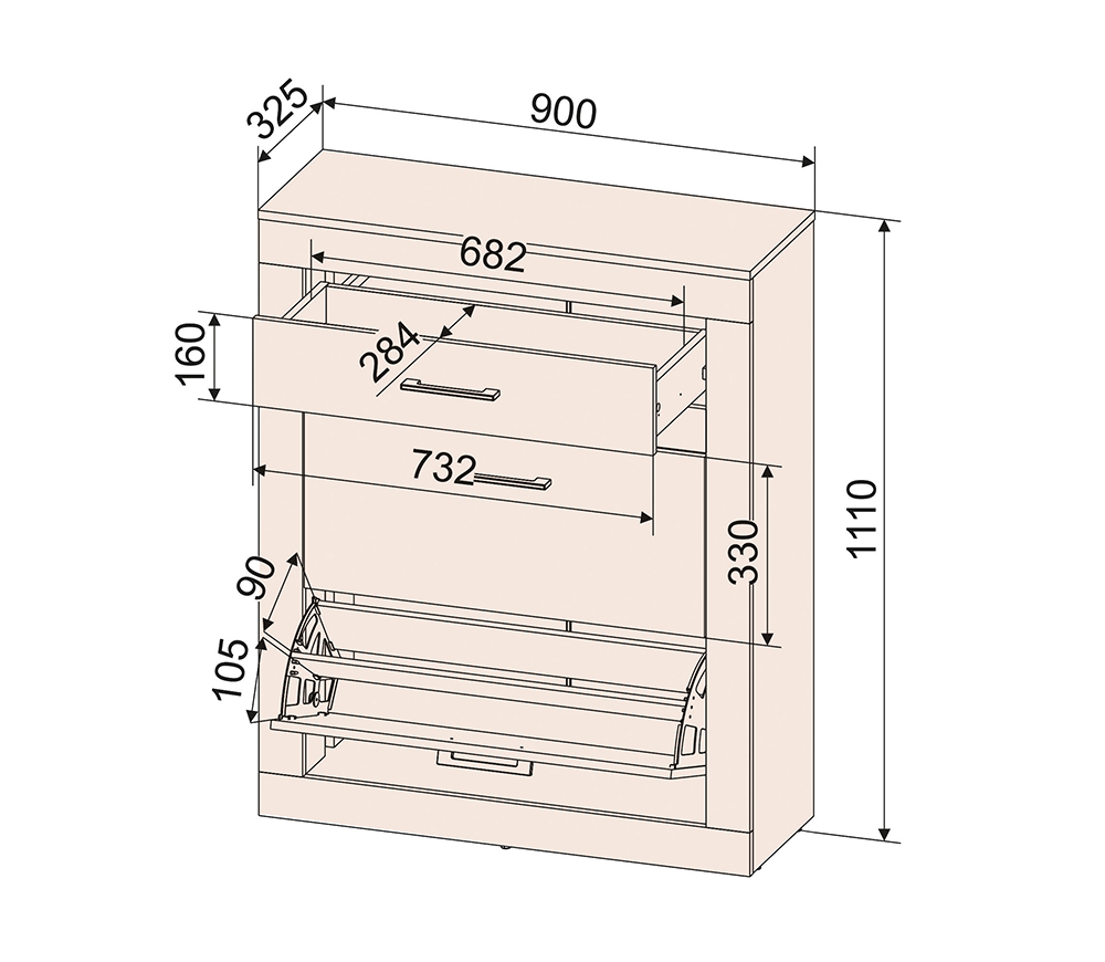 Размер (ШхВхГ): 139х90х38 см. Материал: МДФ покрытый плёнкой, ЛДСП.