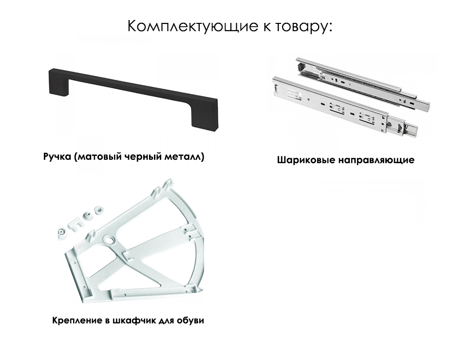 Фурнитура: ручка металлическая черная матовая, шариковые направляющие, газовые подъемники.