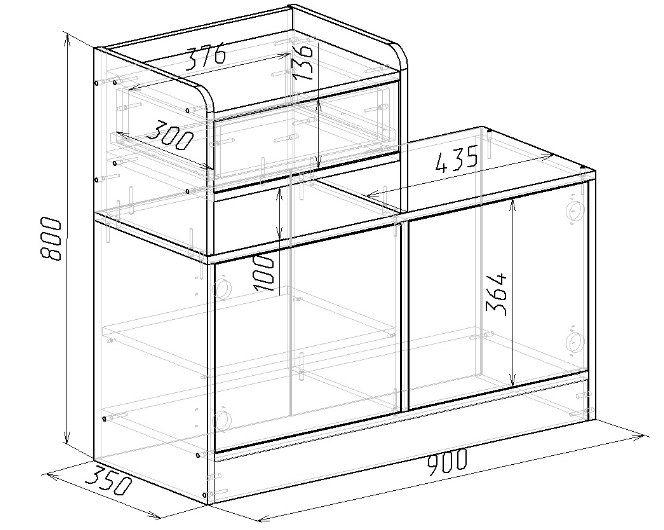 Размер (Ш x Г x В): 900 x 350 х 800 мм