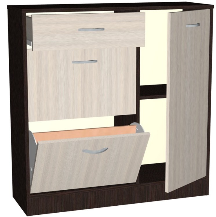 Тумба вмещает до 8 пар обуви. Оснащена выдвижным ящиком и полками.