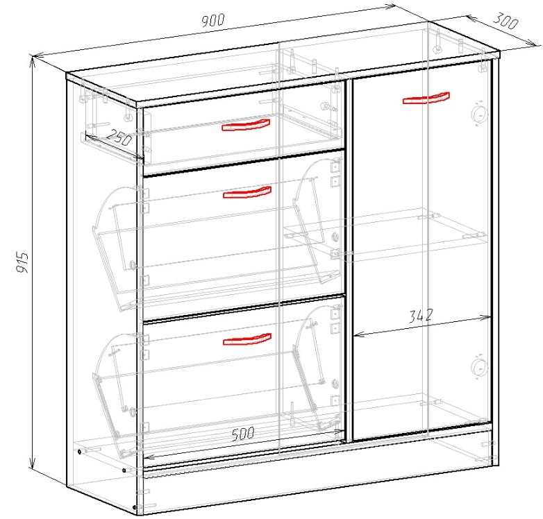 Размер (Ш x Г x В): 900 x 300 х 915 мм