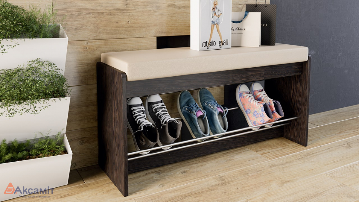 Тумба для обуви «Тайм Тип 2» (Венге Цаво/Кожзам Крем)