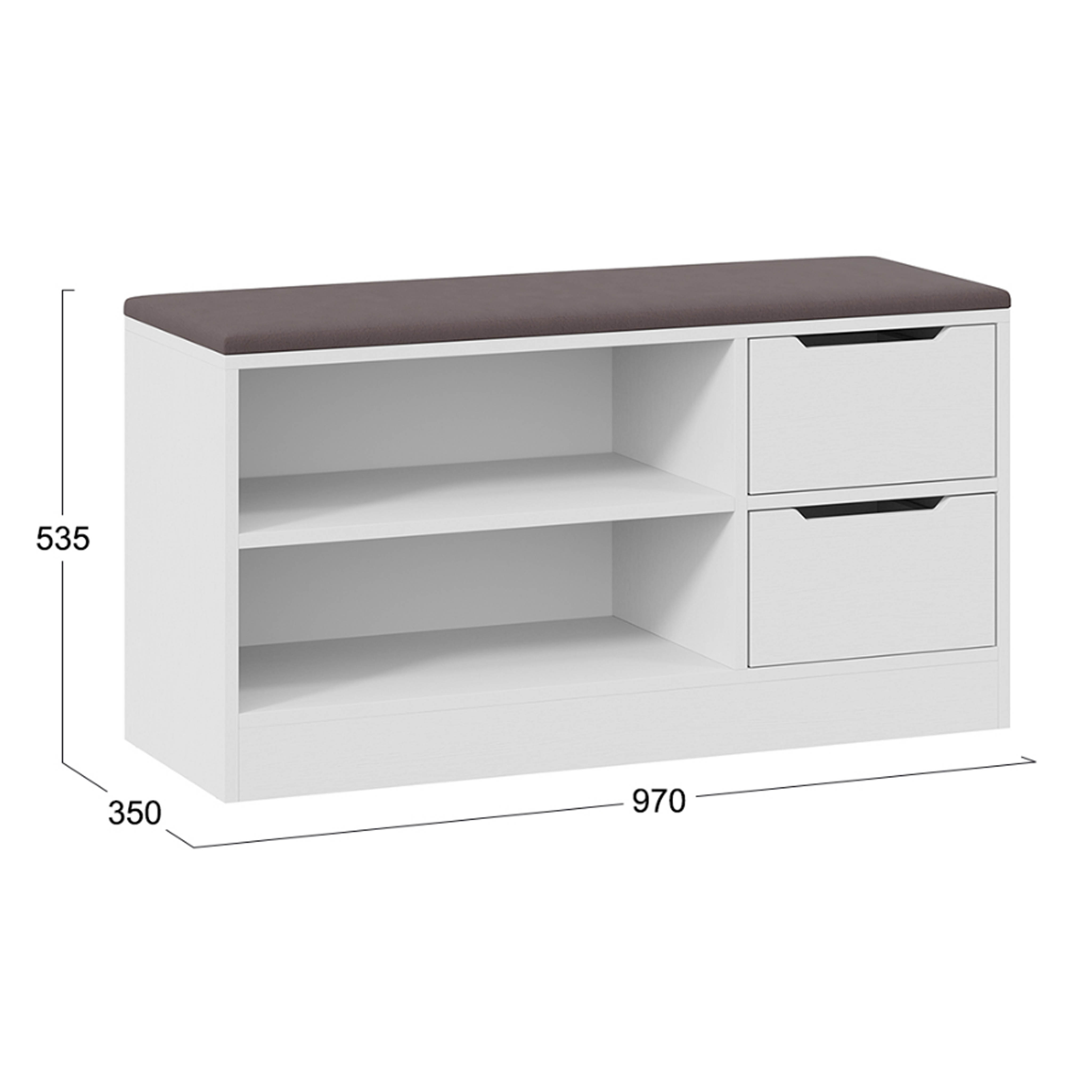Тумба для обуви «Тип 13» 350*970*535, велюр серый/белый ясень