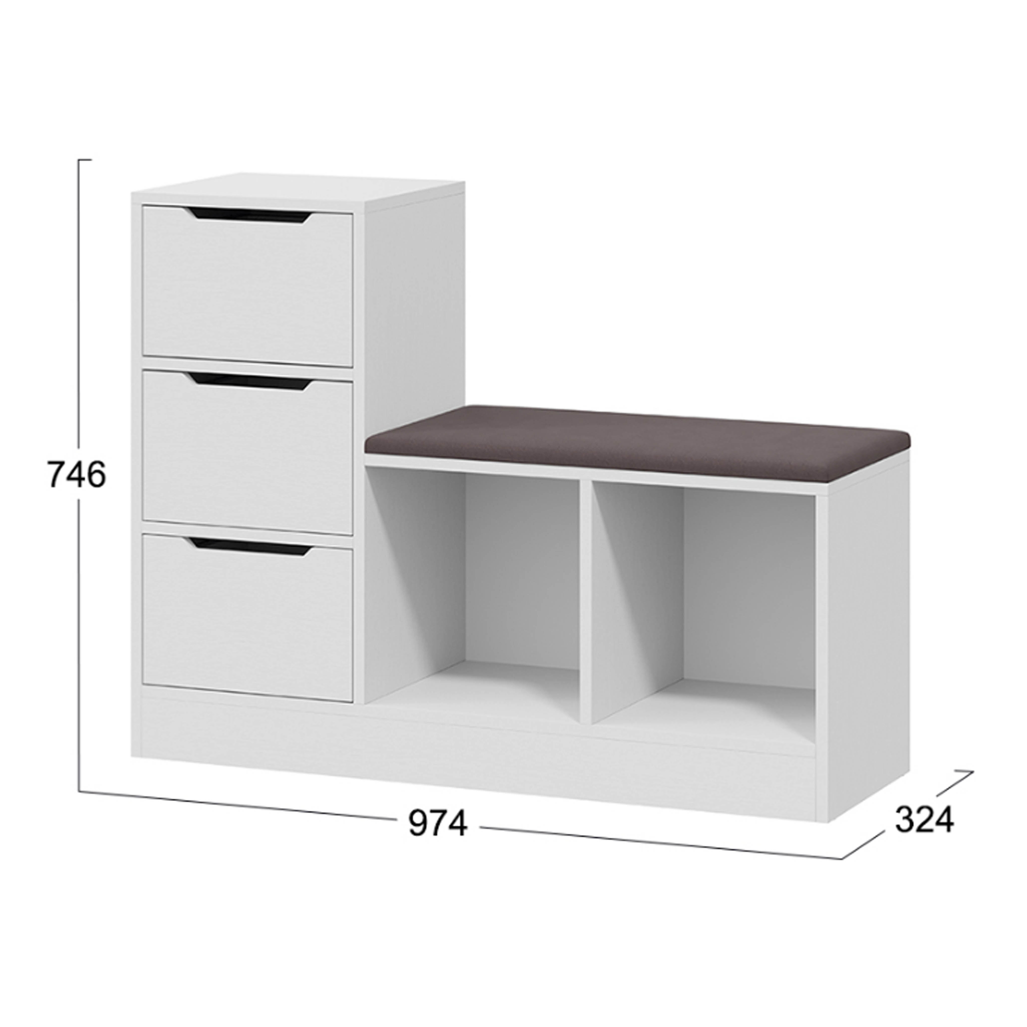 Тумба для обуви «Тип 14» 324*974*746, велюр серый/белый ясень