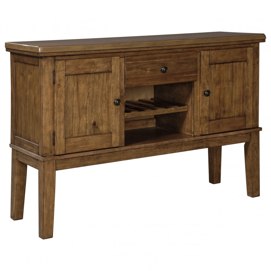 Широкая тумба с двумя распашными отделениями и выдвижными ящиками.