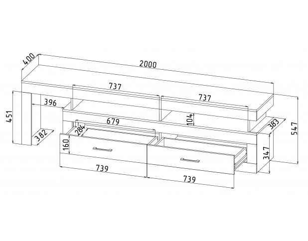 Небольшая тумба с закрытыми остекленными полками по бокам. Четыре удобных ящика по центру.