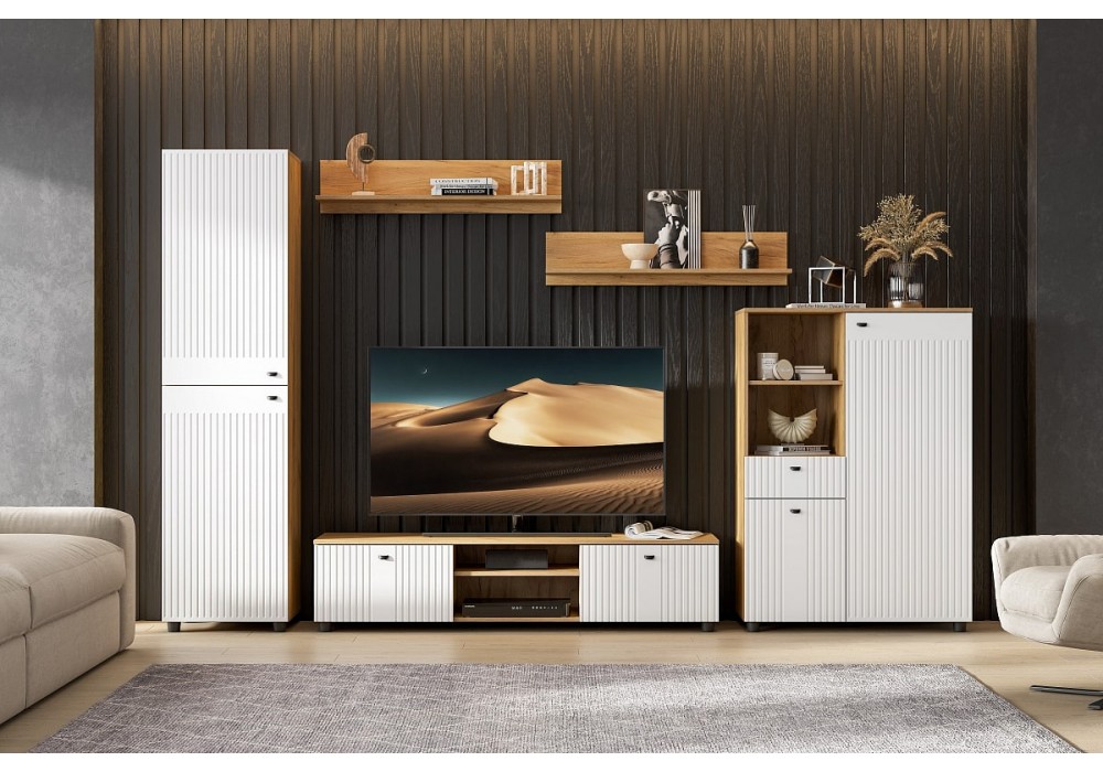 Тумба для ТВ со створками и нишей «SV-Мебель Милан» (дуб золотой/белый матовый)