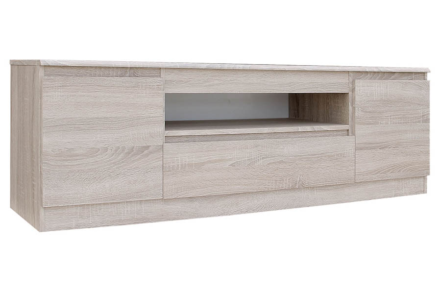 Тумба под ТВ в белом цвете с закругленными углами. Без ручек.