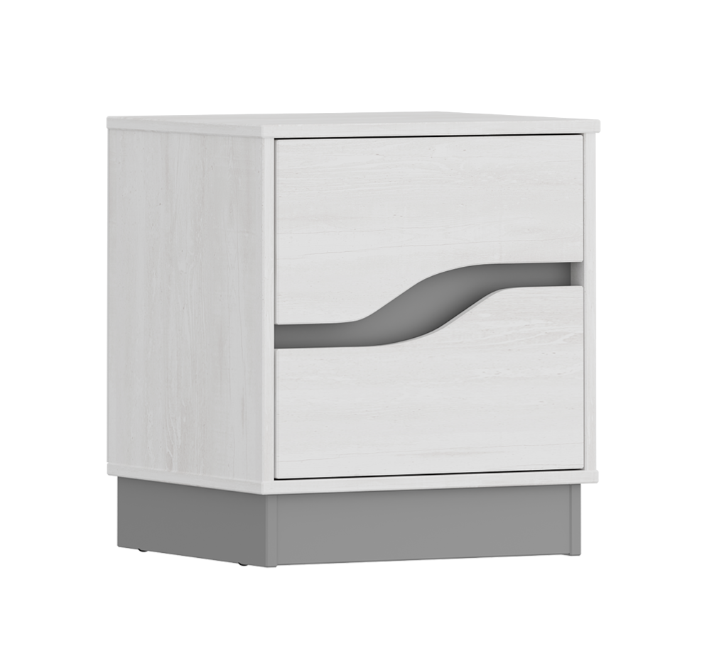 В набор входит комод с четырьмя выдвижными ящиками и тумба.