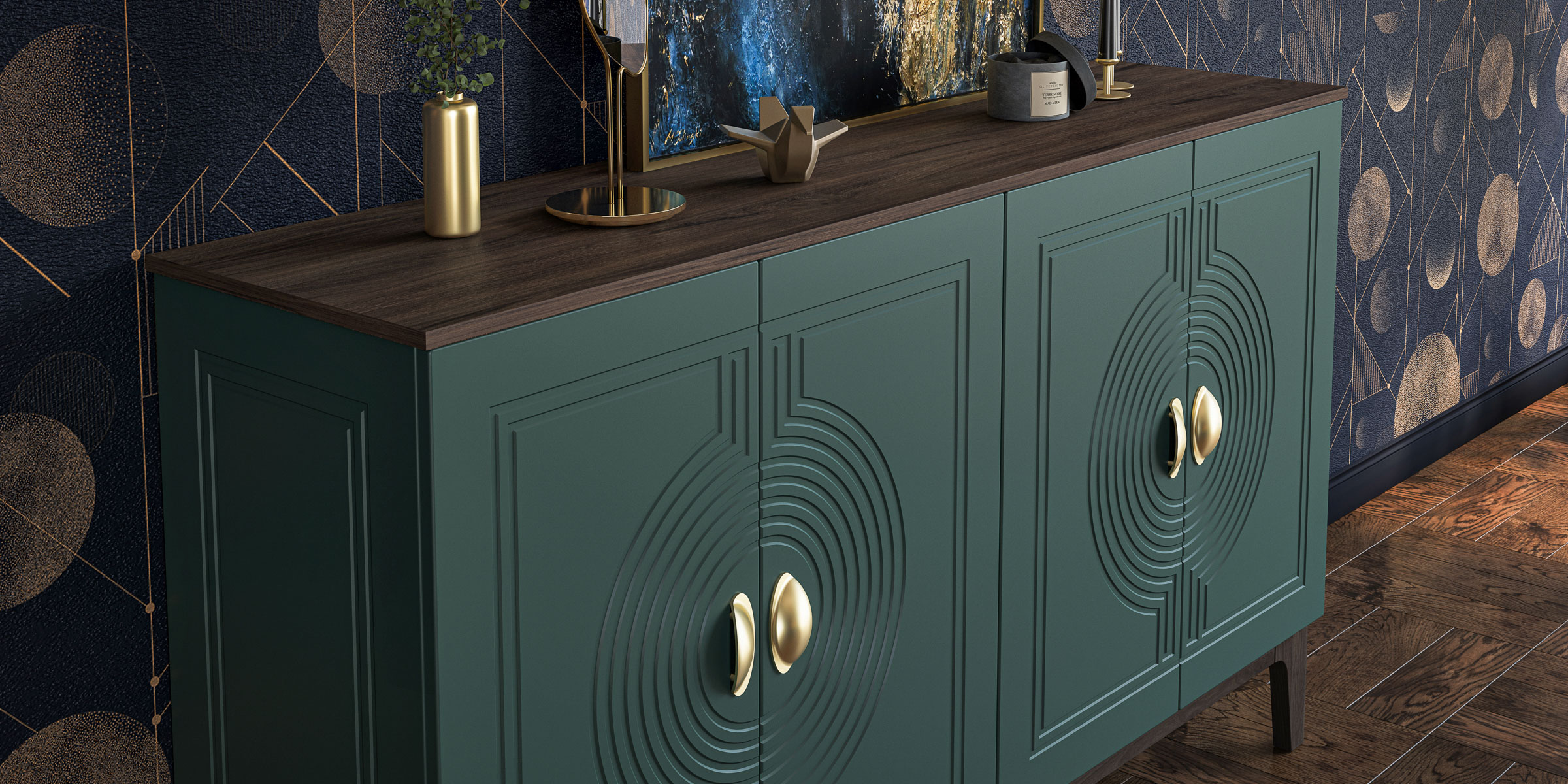 Сочетание насыщенного корпуса Гикори Прадо и акцентного фасада Комбу Грин формирует образ, в котором выразительность встречается с утончённостью. Тёплая древесная текстура наполняет интерьер уютом, а глубокий зелёный фасад придаёт пространству характер и индивидуальность.