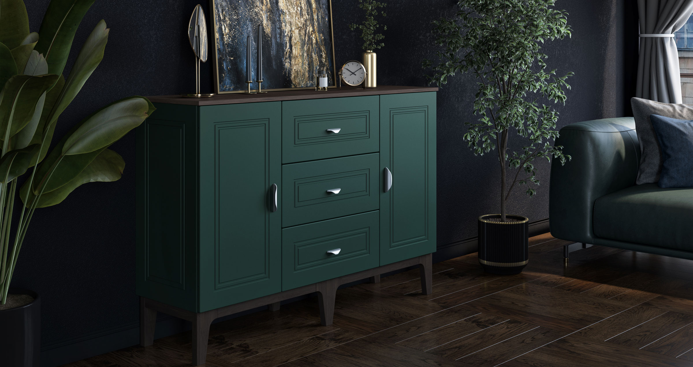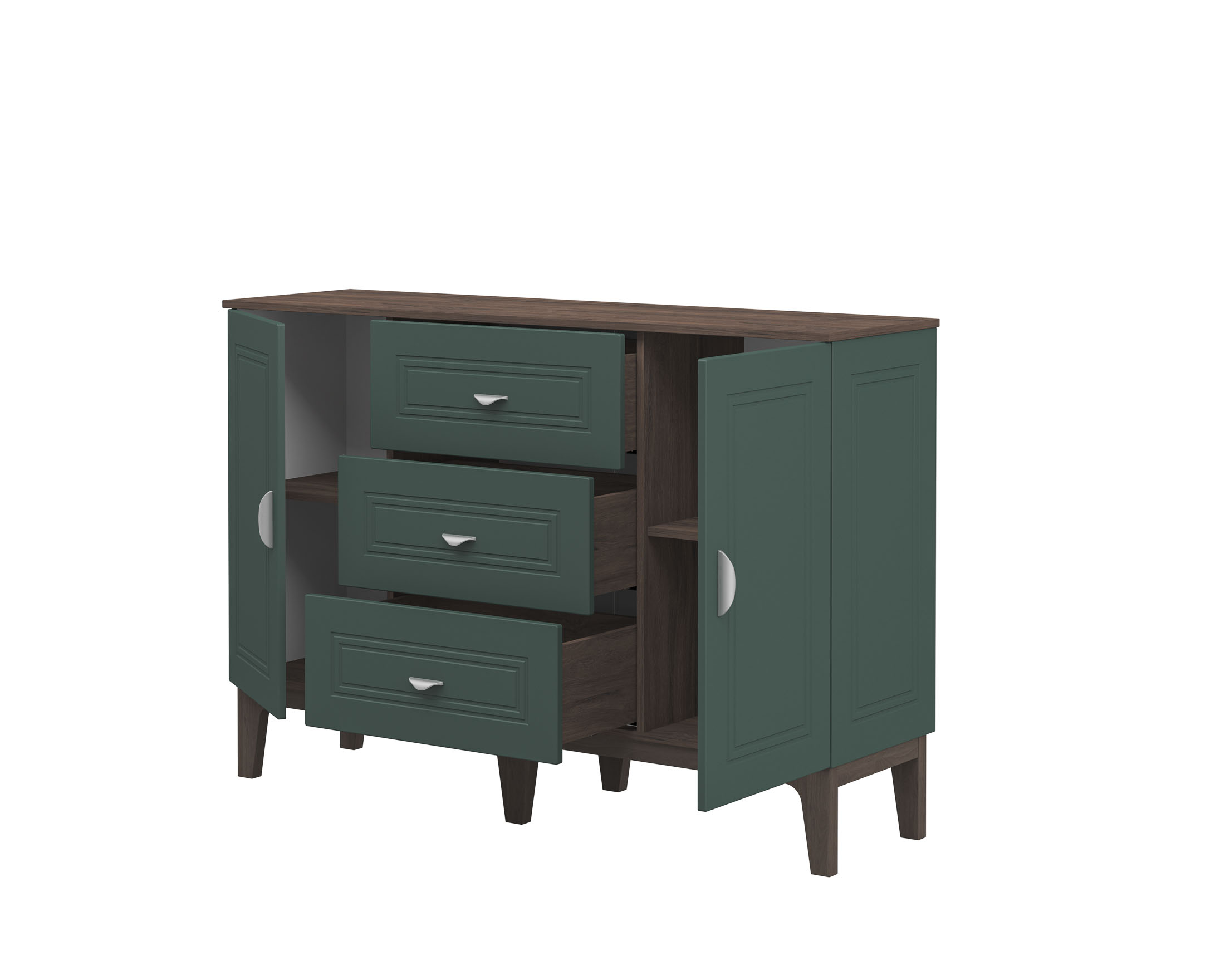 Сочетание насыщенного корпуса Гикори Прадо и акцентного фасада Комбу Грин формирует образ, в котором выразительность встречается с утончённостью. Тёплая древесная текстура наполняет интерьер уютом, а глубокий зелёный фасад придаёт пространству характер и индивидуальность.